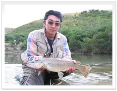 マタウラリバーには膨大な数のブラウントラウトが生息しています。それと同様にものすごい数の#18〜#16のニンフを確認する事が出来ます。川の中を歩くと、ザワザワーと無数の数の黒色のクローラーニンフが動くのを見る事が出来るでしょう。鱒の平均サイズは45〜50cmで、ドラグをものともせず、バッキングラインを引き出して行くものすごいパワーを私たちに見せつけてくれます。
